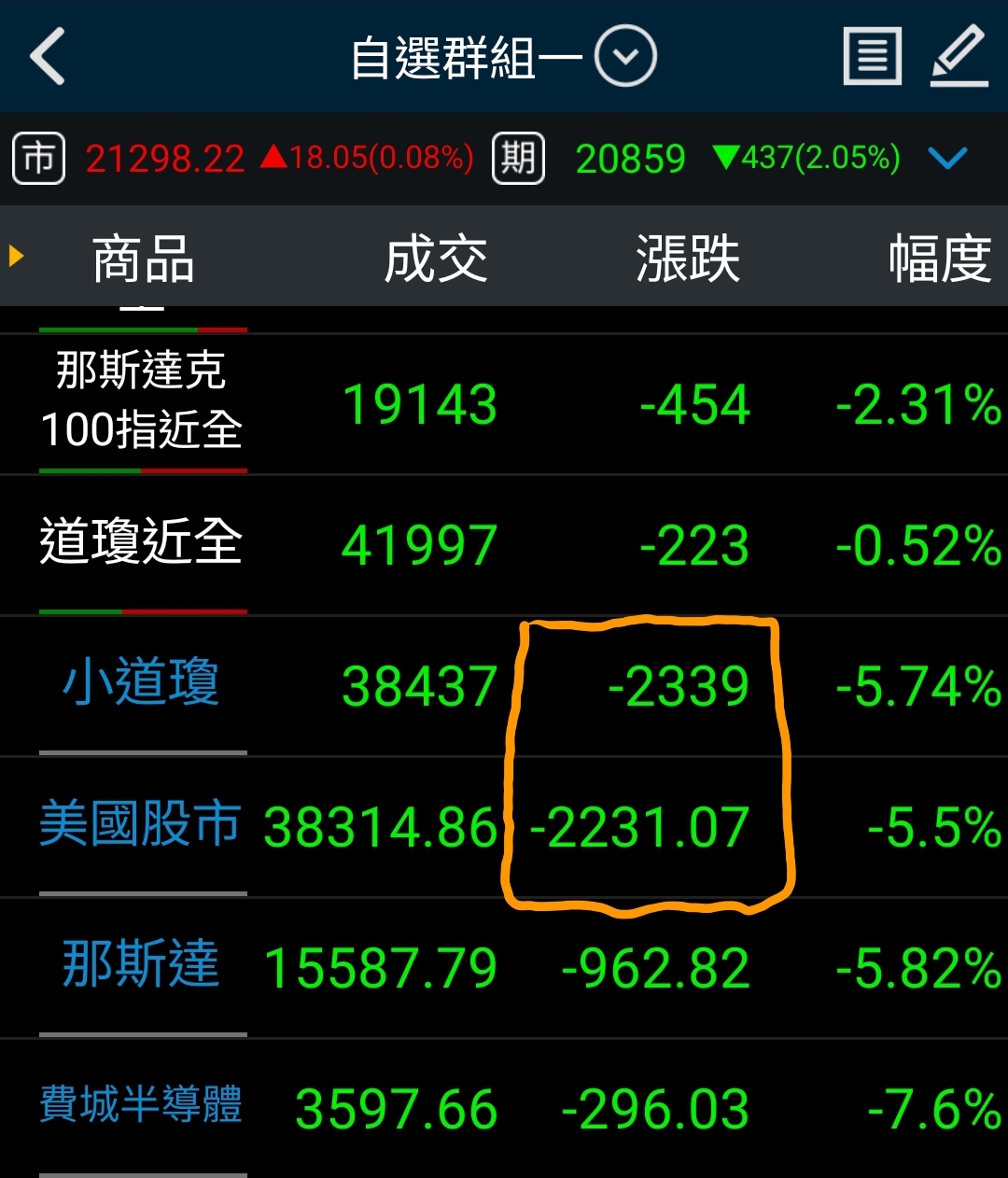 那指與小道收盤前一小時崩跌千點,台指也跟著大跌800點!🥵