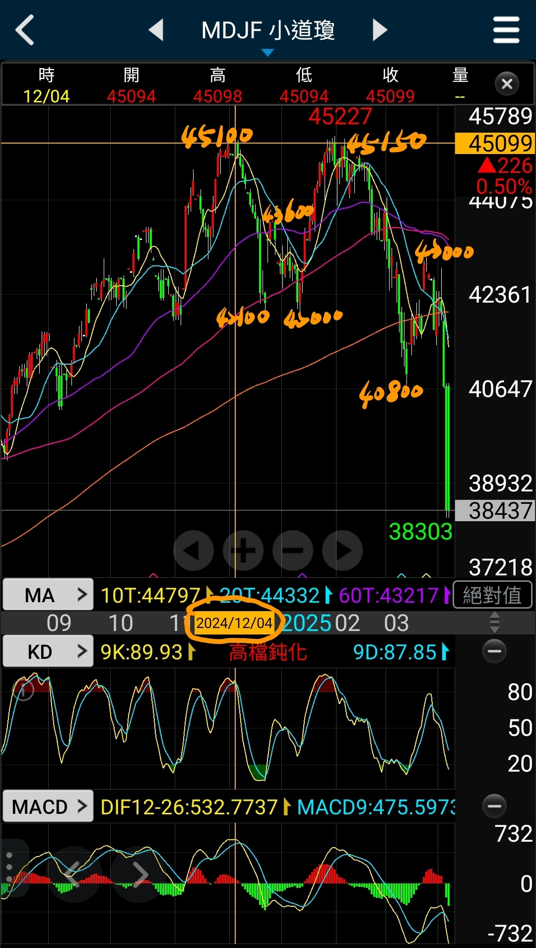 12/5小道45100起跌😎,一月底45150再次精準打擊😂;