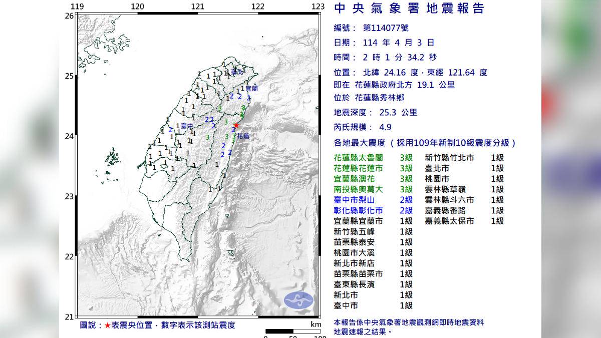 氣象署:台南官田地震規模4.9 ,3天內防餘震
