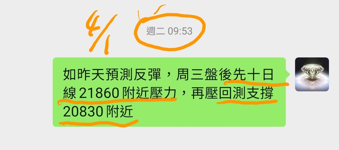 跌到哪? 彈到哪? 我們都會在微信中“預告”~😏