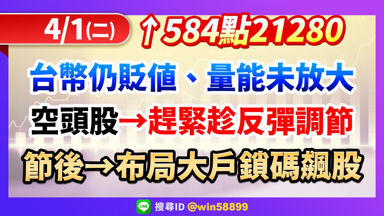 4/1(二)台股大跌不可怕!可怕的是反彈大漲→選在愚人節?!