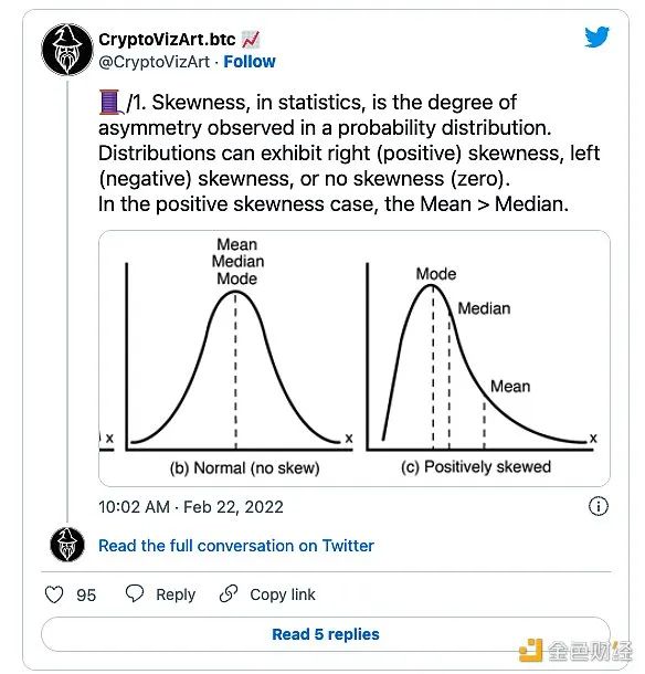 偏度是在分佈中能觀察到的不對稱程度。當平均值大於中值時,會出現正偏度,表明小額交易的數量多於大額交易。