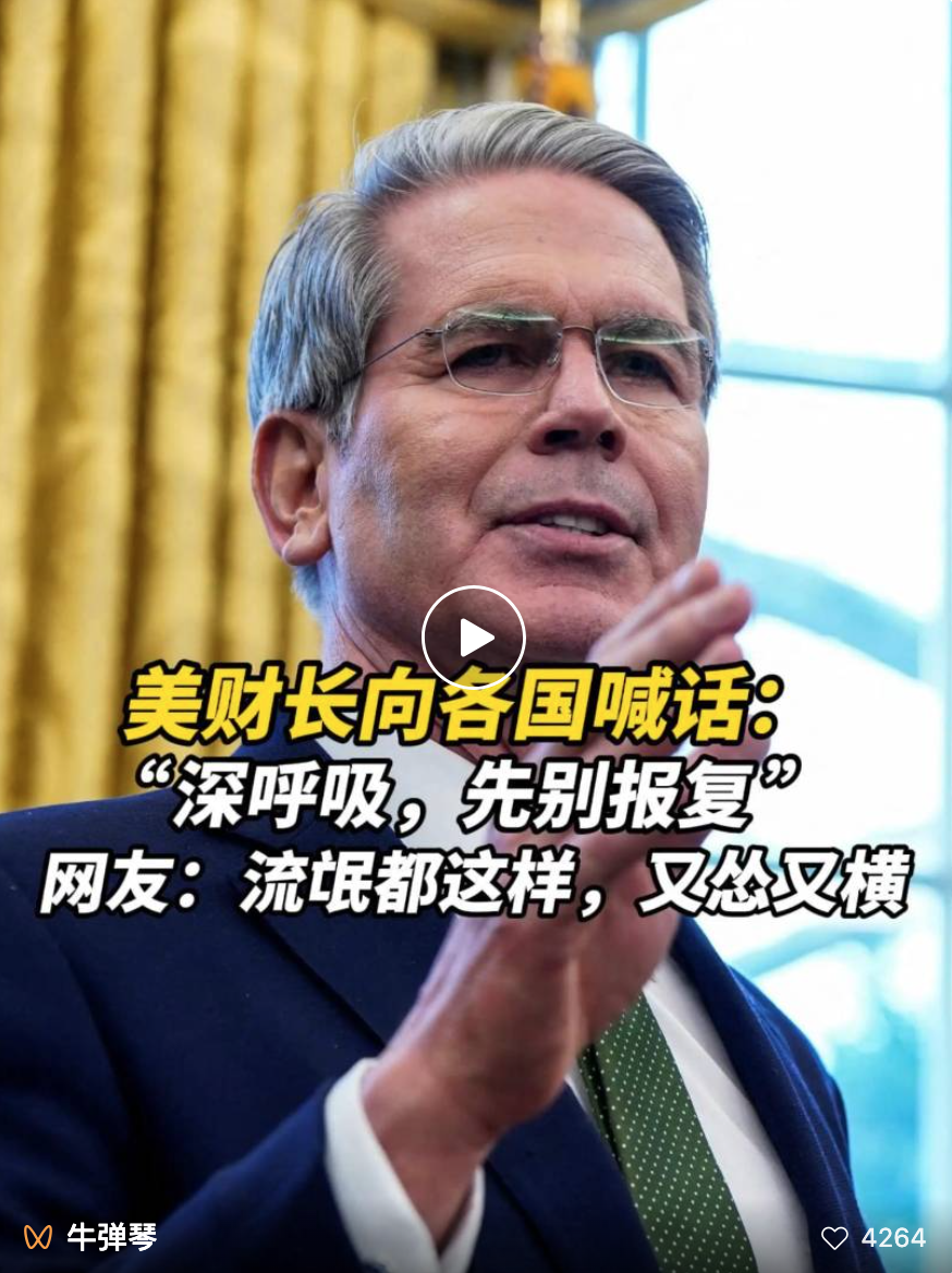貝森特是這樣說的:先冷靜下來,深吸一口氣,不要立刻報復。讓我們看看事情會如何發展,因為如果你進行報復,局勢就會升級。什麼意思?