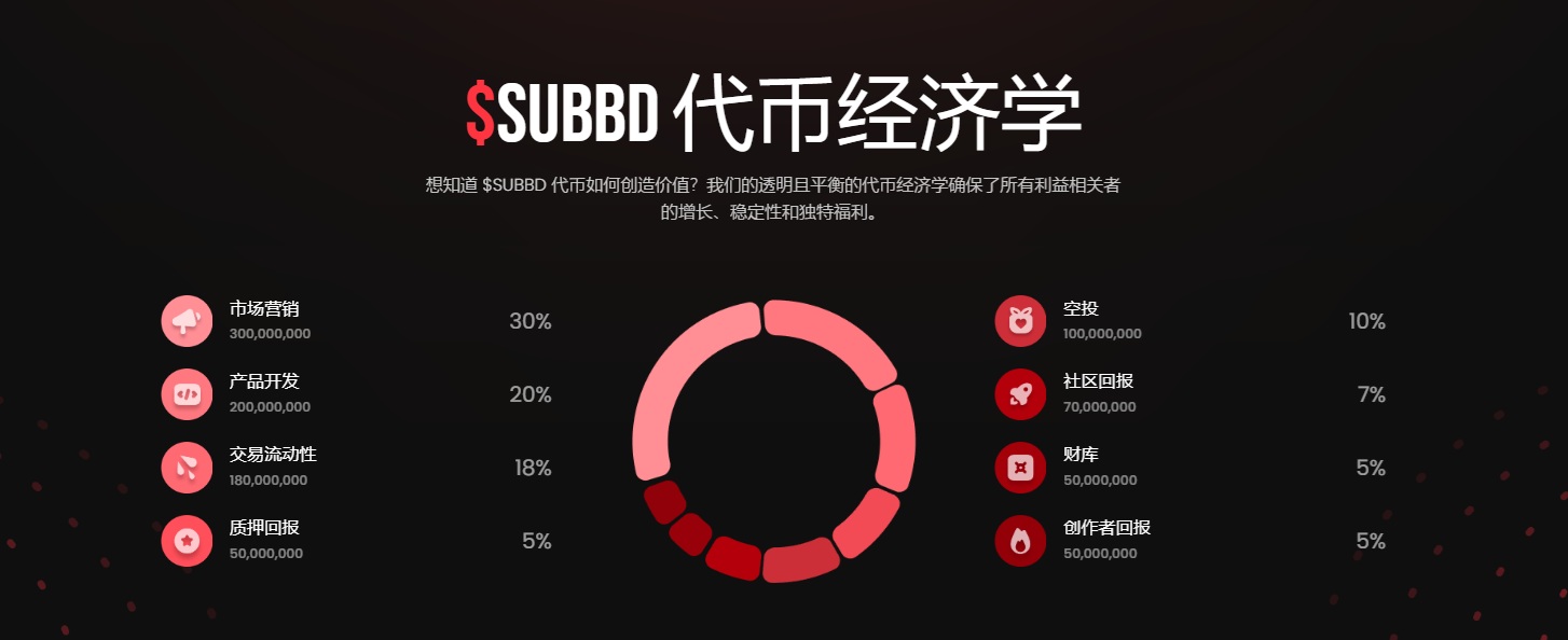 為構建高黏性、高參與度的社區生態,SUBBD 已將總供應量 10 億枚 $SUBBD 中的部分份額明確分配如下: