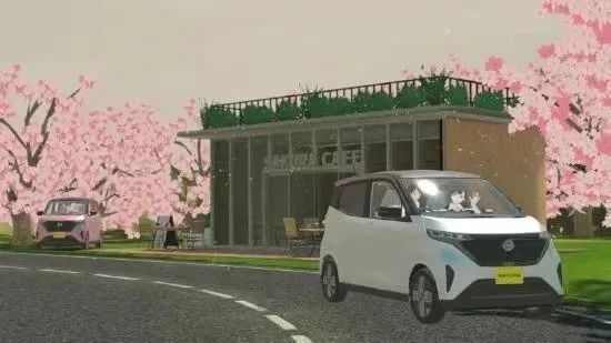 日產在VRChat裡的「NISSAN CROSSING」空間舉辦的虛擬發布會,不僅介紹了新車「Sakura」,還發布了可供用戶進行VR虛擬試駕的試駕島—— 「NISSAN SAKURA Driving island」。島上設置了四季巡迴路線,有春天的咖啡館、有夏天的海灘、有秋天的茶社、還有冬天的雪人。
