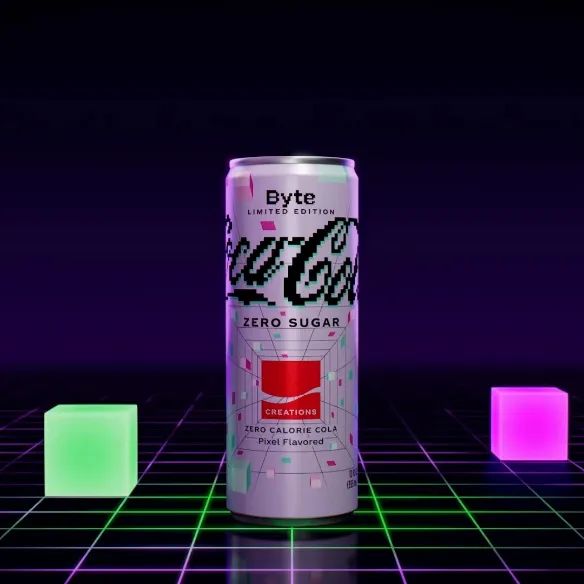 比如可口可樂搖一搖,搖出「太空感」。如果說今年年初可口可樂公司推出的「星河漫步」(Coca-Cola starlight)只是淺表了品牌對於太空科幻元素的興趣,那麼他們在五月份推出的「零糖字節」(Coca-Cola Zero Sugar Byte)則毫不掩飾搶灘元宇宙的野心。