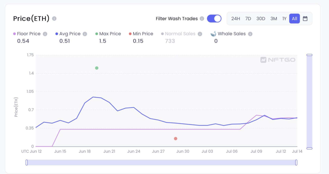 上圖為INKEPASS發行以來價格變化,圖源NFT GO。