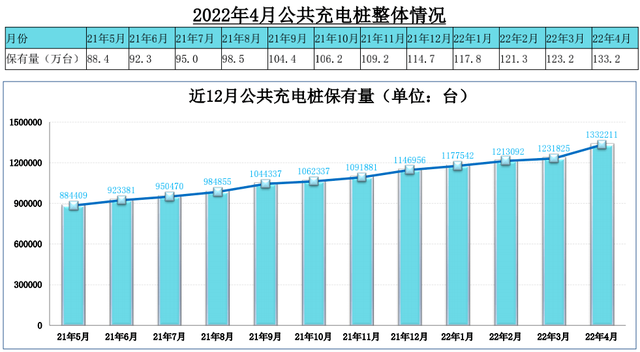 光是中國,2022年4月這一個月,公共充電樁就增加了10萬台,總體數量超過了130萬台,如果和去年同期比較,增長率高達53.4%。
