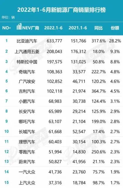 2022年上半年,中國新能源汽車實現了真正的高歌猛進,比亞迪更是以63萬輛,超過特斯拉八萬輛的成績,成為上半年全球新能源車銷冠。