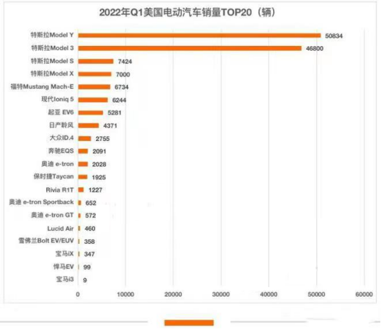 今年一季度,美國純電動車銷量前20名中,橫豎見不到豐田的身影,榜單上唯一的日系車是日產聆風。