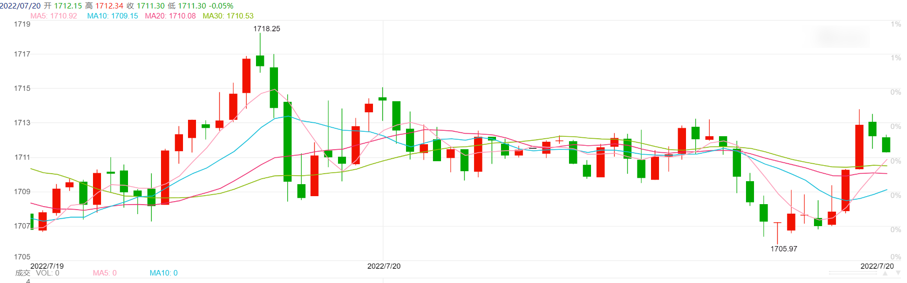 在多重利空和利多消息的相互影響下,金價此時已經累計上漲了100美元/盎司左右,截至本文發稿,報1711.06美元/盎司。不過,如果在噤聲期以前已經有了大幅的波動,這一次,它的波幅可能會被限制在10美元甚至更低的交易區間內。
