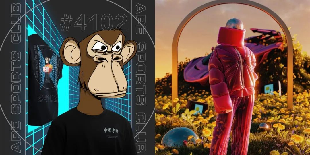 相較於發行數字藏品的常規玩法,運動潮牌李寧力求創新,選擇聯動出圈NFT項目“無聊猿”,邀請BAYC家族的無聊猿#4102號成為快閃店主理人,並將其作為印花,打造實體時尚單品;此外,前段時間在國內社交媒體小紅書上大火的“虛擬時裝”,通過PS技術輔助NFT實現了虛擬與現實的聯動,讓眾多網絡潮人過了一把未來時尚的癮。