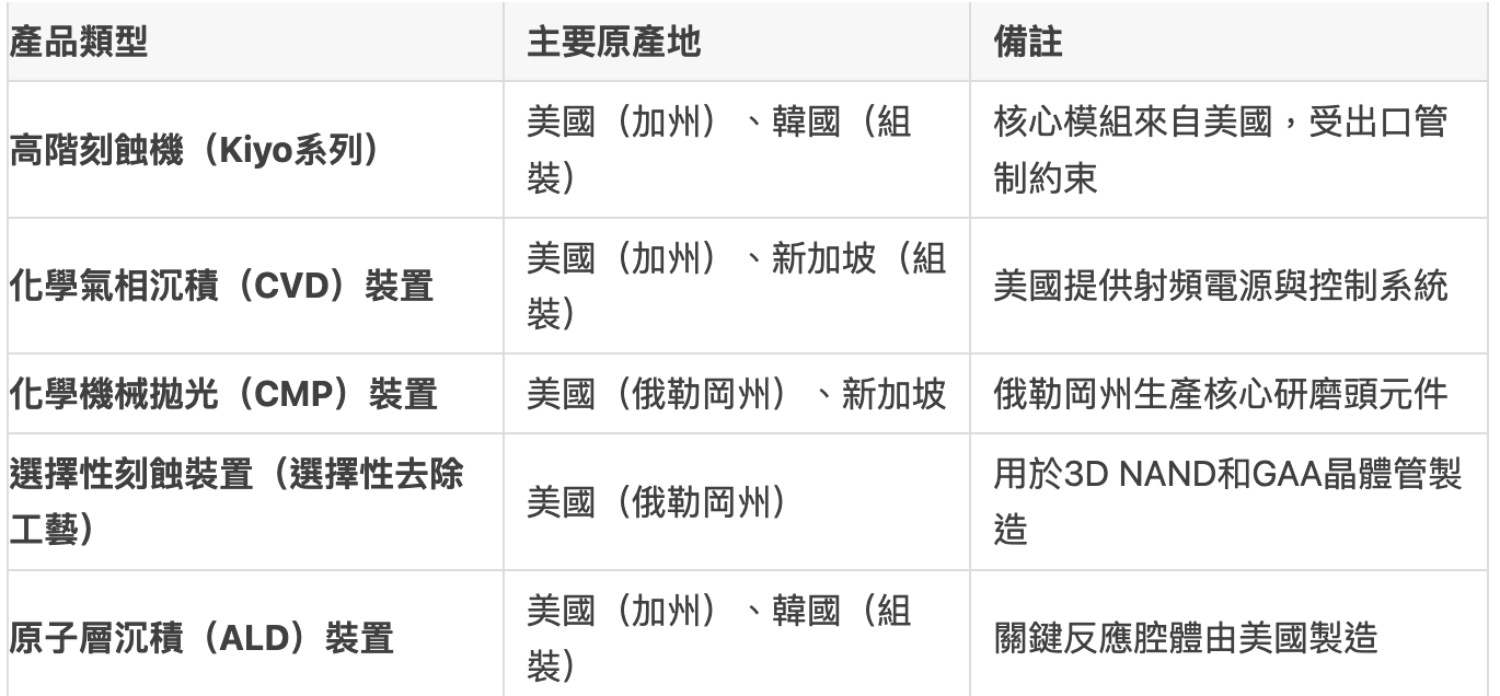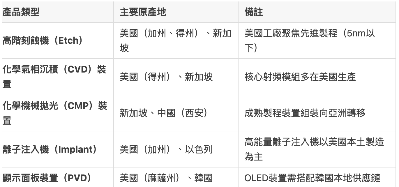 - 美國原產裝置(如應用材料、泛林)可能受出口管制約束。