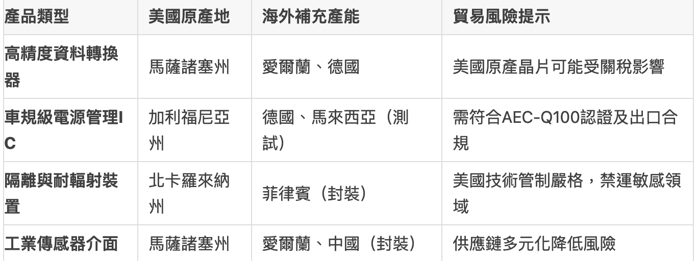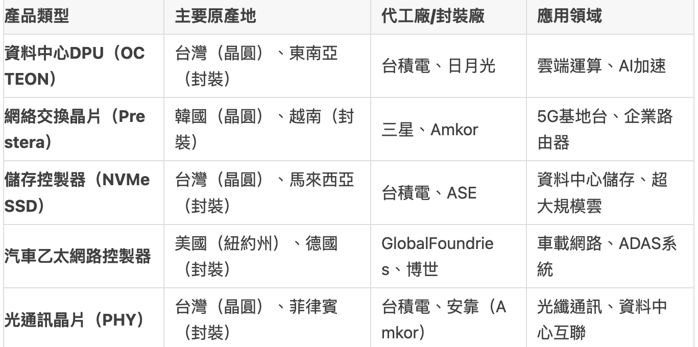 - 封裝環節:墨西哥、哥斯大黎加等地負責低成本封裝,但原產地判定仍以美國晶圓製造為準。