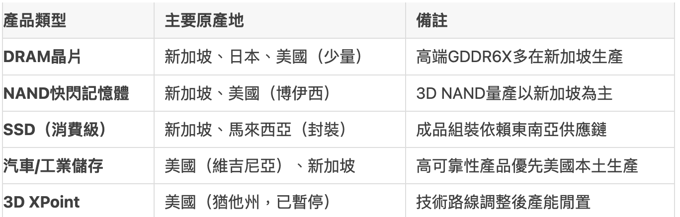- 儲存晶片(美光、西部資料)的量產環節(新加坡、日本)。