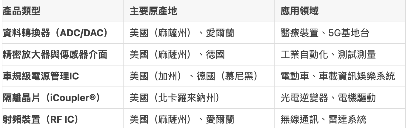 - 產品:高效能類比、混合訊號與數字訊號處理技術