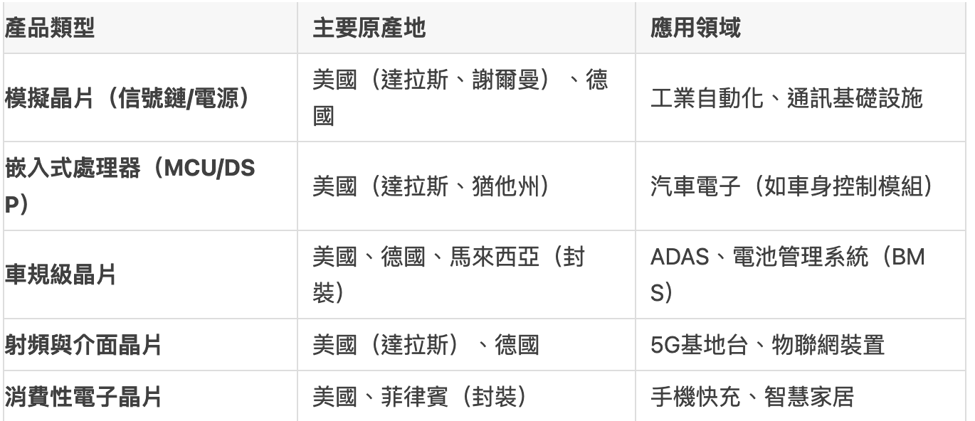 - 晶圓製造地優先:半導體原產地通常以晶圓製造地為準(如英特爾、TI、美光等IDM企業)。