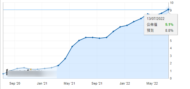 隨著近期大宗商品價格高位回落,外界正在密切關注通脹見頂的跡象。紐約聯儲最新三年期通脹預期降至3.6%。作為美聯儲密切關注的指標之一,密歇根大學五年期通脹預期從6月的3.1%顯著下降至2.8%。由於需求下滑影響,美國採購經理人指數(PMI)衡量企業成本和銷售價格的通脹指標在6月明顯回落。然而,在本月會議前夕的大量公開表態中,美聯儲官員依然將物價因素視為經濟的重大威脅,並暗示採取進一步行動的可能。