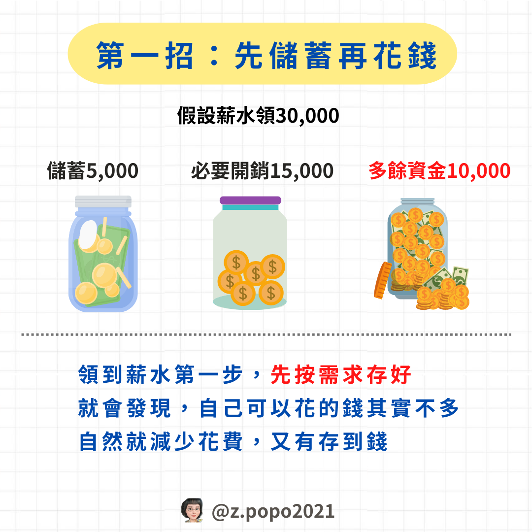 先把儲蓄、花費的錢分配好,剩下才是可以花的