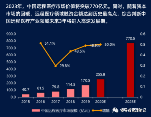 2019年,中國遠程醫療市場規模達到170.5億元,預計2023年中國遠程醫療市場規模有望超過770億元。