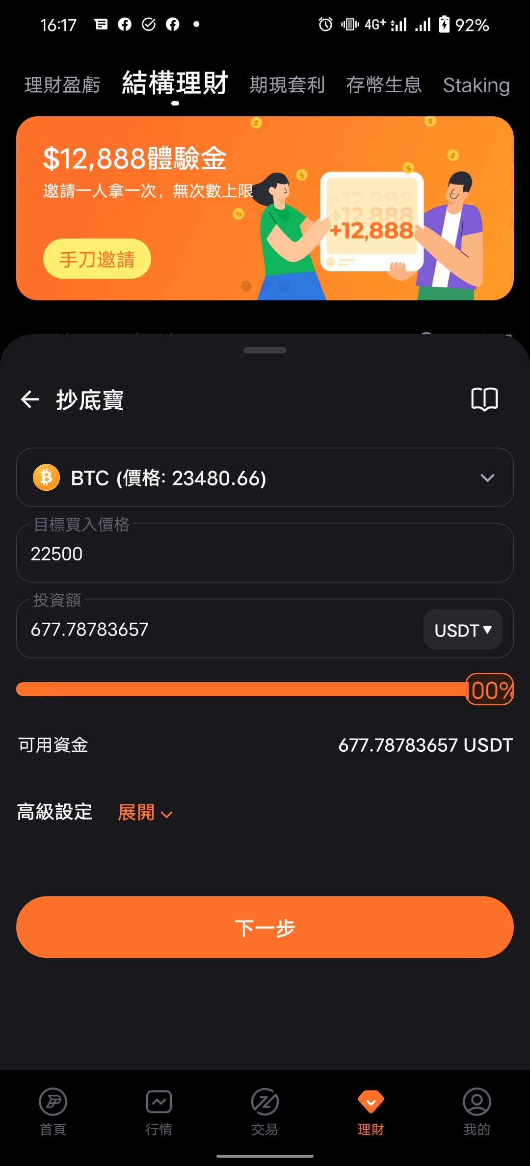設定完成後按下一步,就會再跟你二次確認要投資的內容,