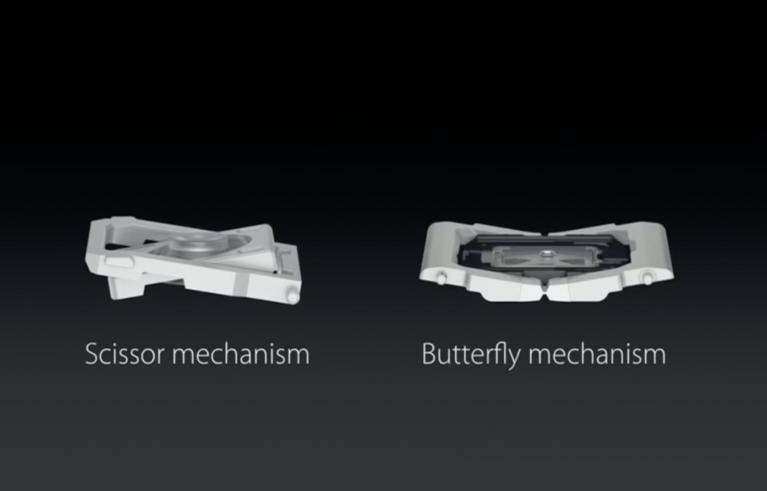 (相比傳統的剪刀結構,蝶式鍵盤的結構更複雜,也更昂貴|Apple)