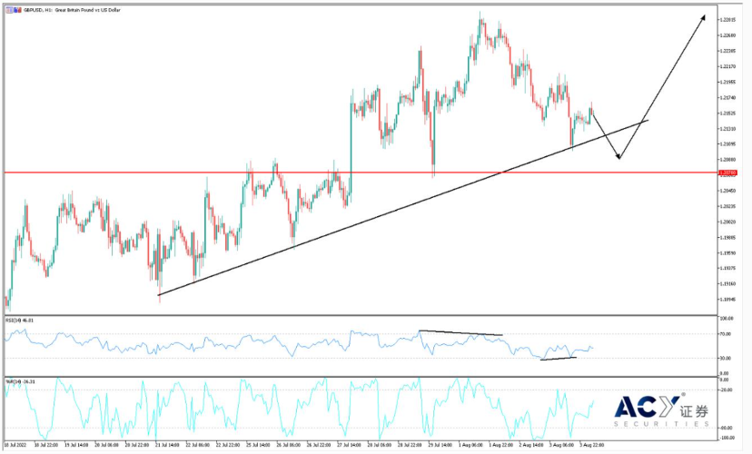 不過,英鎊能看漲多久就要注意央行政策的前瞻指引以及投票結果。在上一輪投票中,6名委員支持25基點,3名支持50基點,英鎊随之大幅升值。在本次投票中,支持50基點的人數越多,英鎊看漲的空間與動能越大。其次還需要關注9月份是否會繼續加息50個基點,同樣會影響英鎊的升值空間。