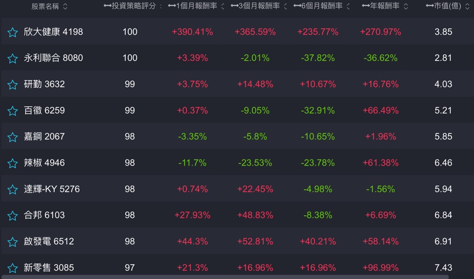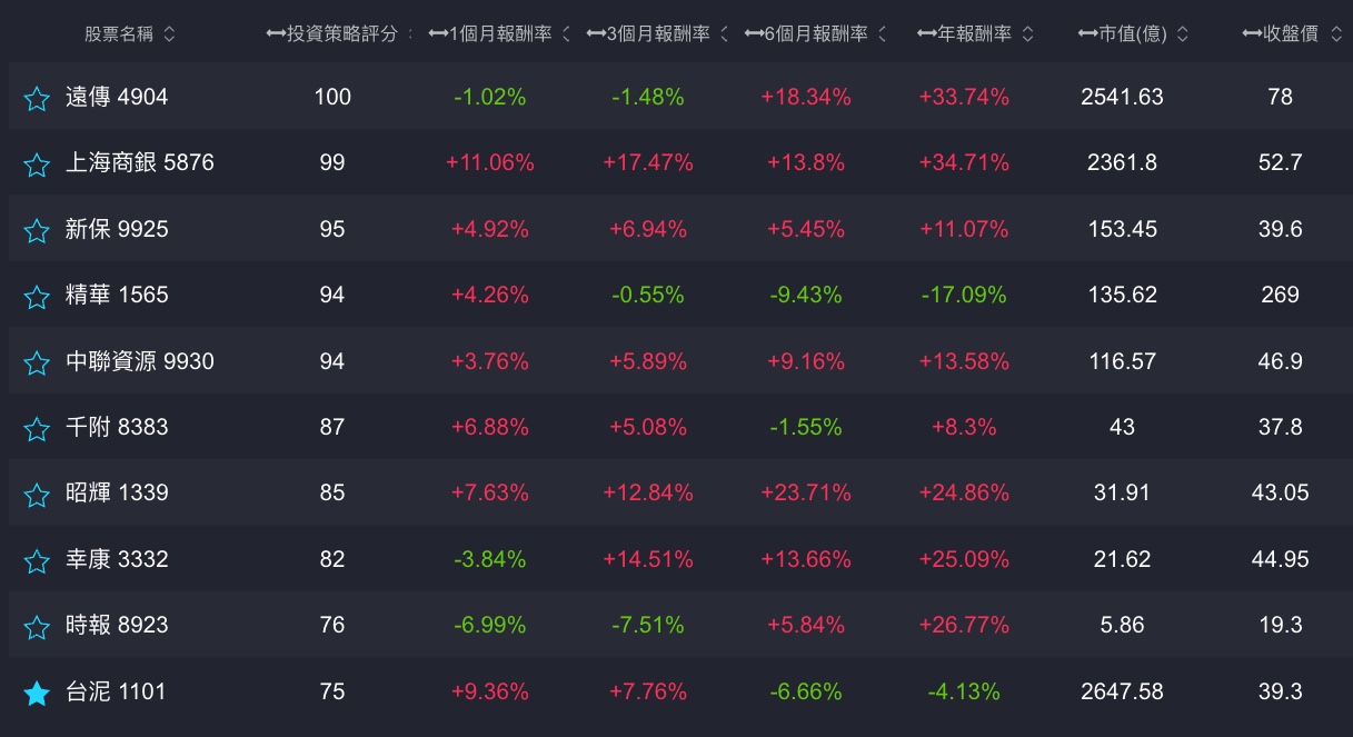 鉅亨易策略之穩定成長股選股一覽表👇👇