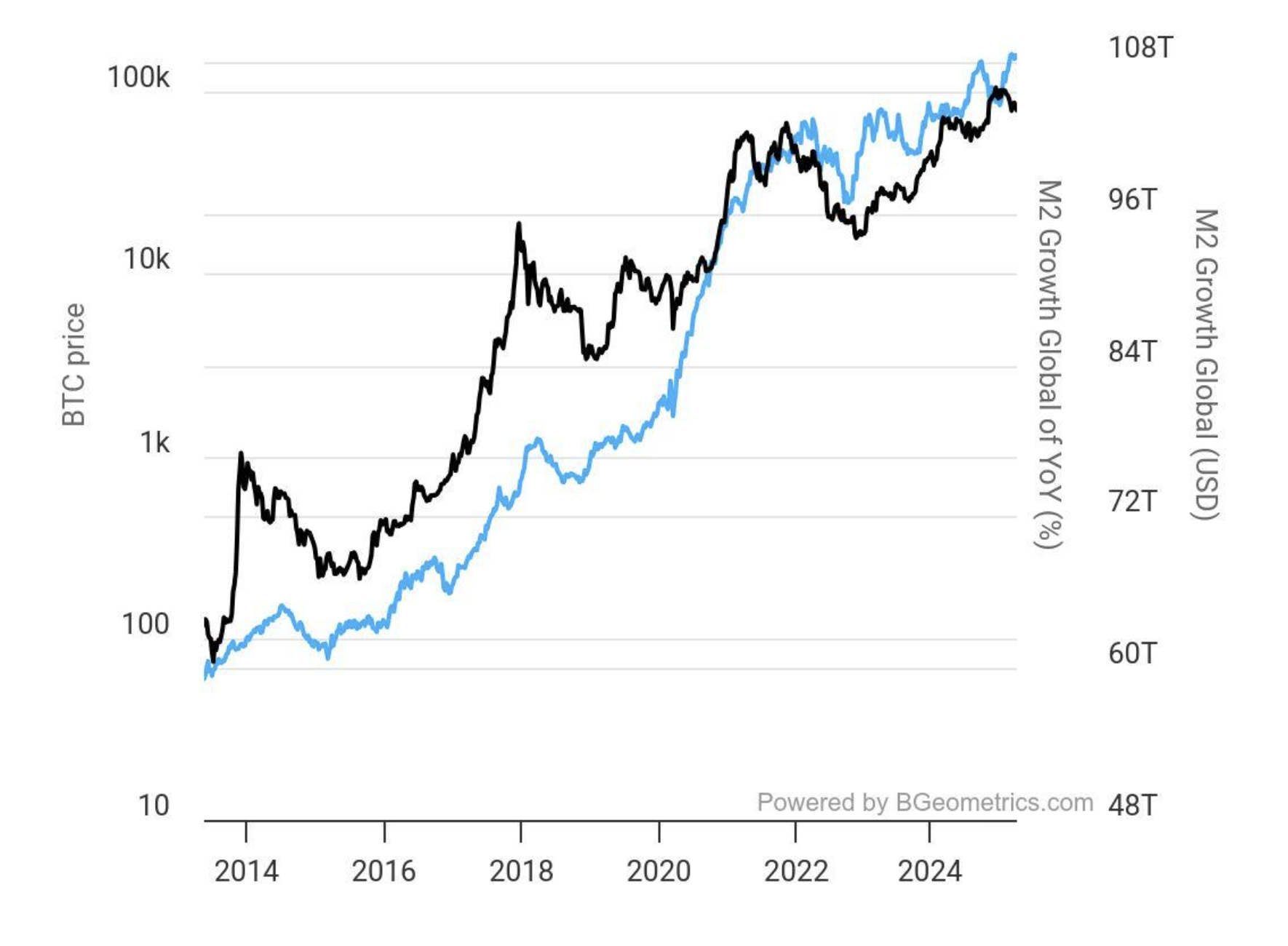 該預測的重要基礎之一,即是預期美國M2貨幣供應量將再度擴張——這一指標與比特幣歷來的多頭行情高度相關,而作為主流山寨幣的Solana,也有望隨之受益。
