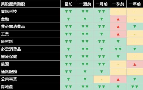 週三各類股表現普遍不佳,標普500指數的11個類股中有9個收低。能源類股表現最佳,上漲+0.82%,其次是房地產,小幅上漲+0.12%。資訊科技類股領跌,大幅下跌-3.43%,其次是通訊服務下跌-2.69%和非必需消費品下跌-2.47%。
