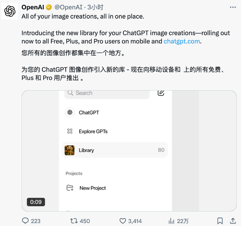 🌁 值得一提的是,今天 OpenAI 也宣佈推出了一個新功能。