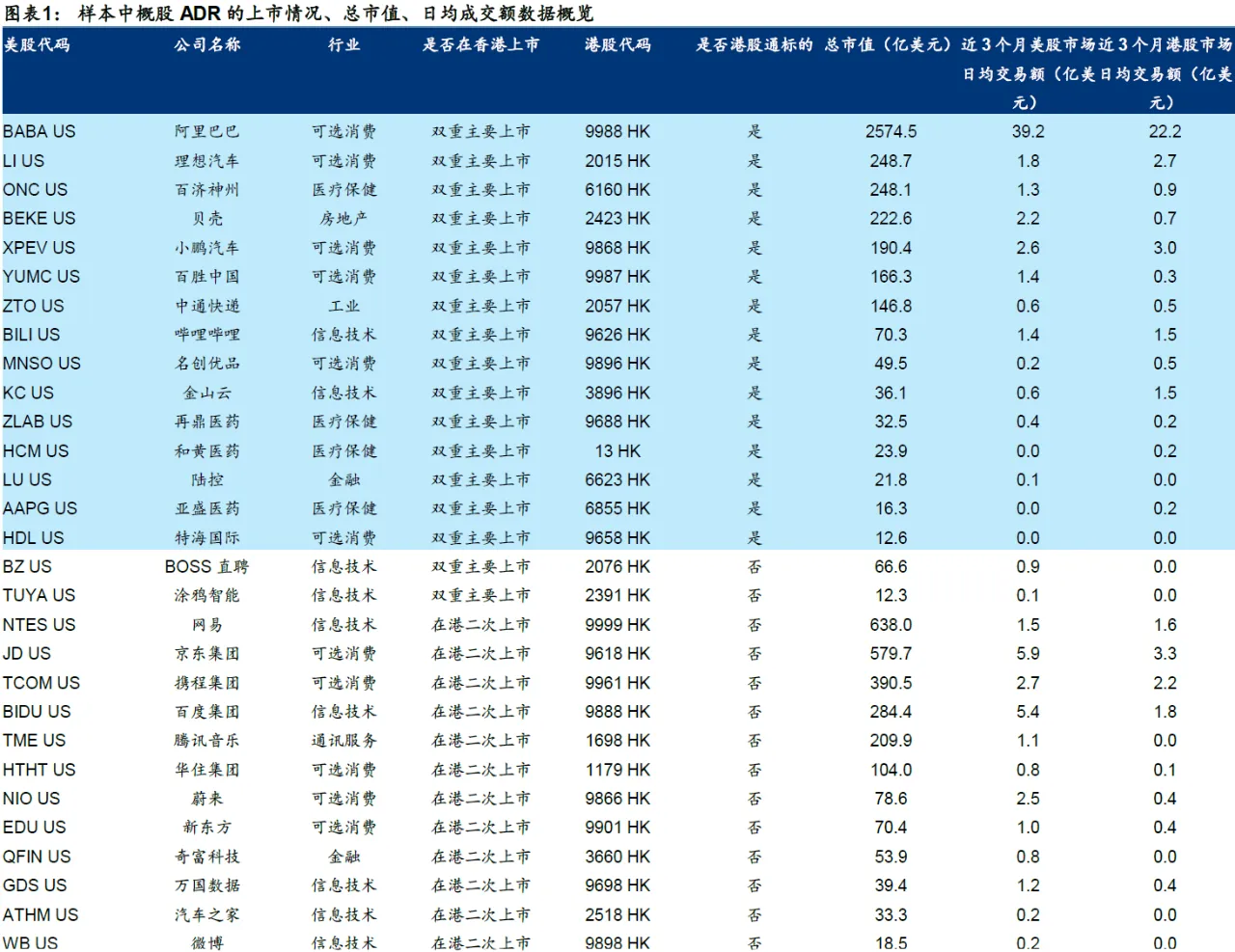 中金公司指出,已在港股上市的34家公司在美流通市值約1.4萬億港元,佔比45%:12家爲「二次上市」,如 $京東集團-SW (09618.HK)$ 、$網易-S (09999.HK)$、 $攜程集團-S (09961.HK)$ 以及 $百度集團-SW (09888.HK)$ (-S爲二次上市;-W爲同股不同權公司);22家爲「雙重主要上市」,如$阿里巴巴-W (09988.HK)$、$百濟神州 (ONC.US)$、$貝殼-W (02423.HK)$及$百勝中國 (YUMC.US)$。