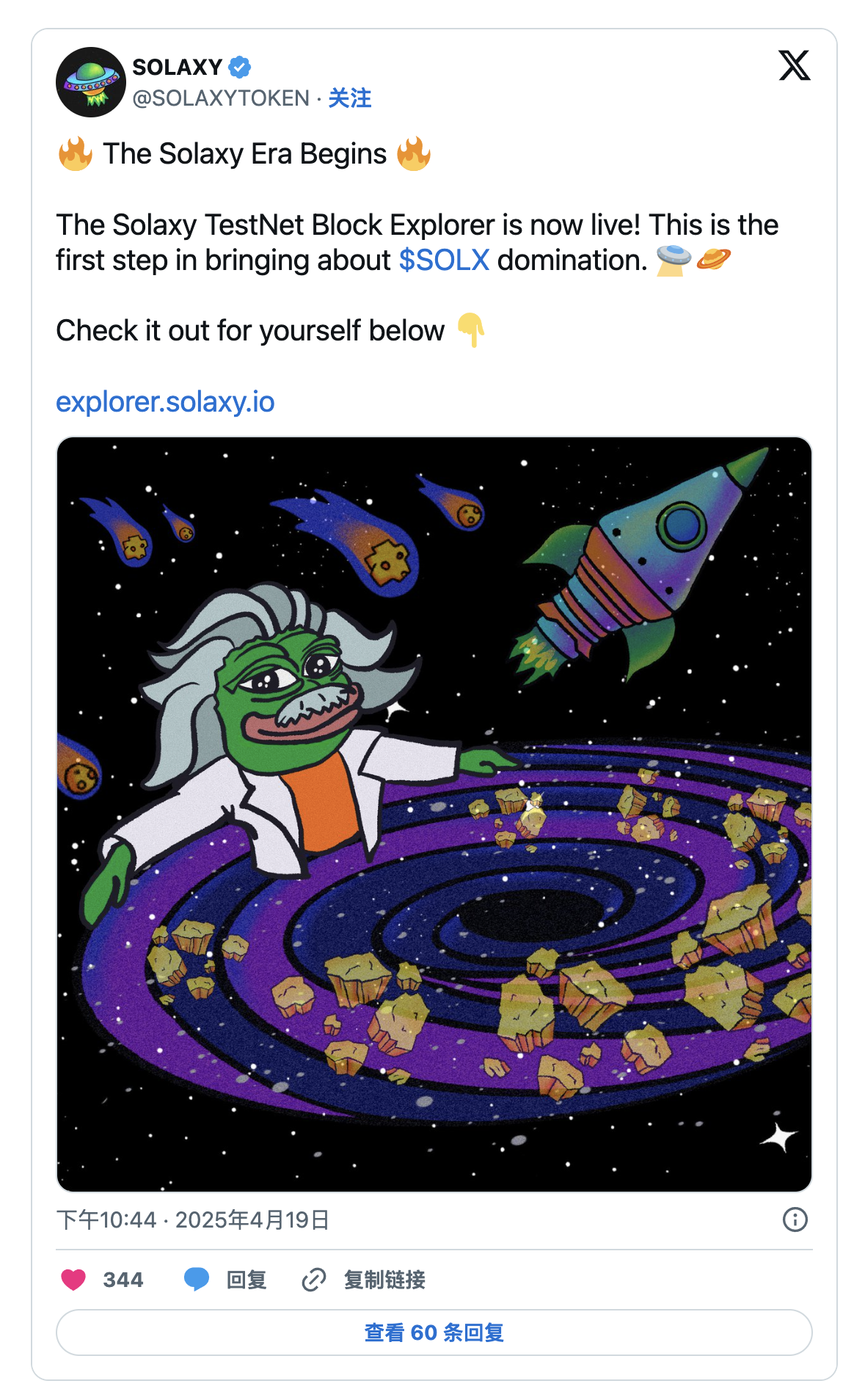 不過,在這個復活節期間,更大的驚喜或許來自其首個 Layer-2 項目 —— Solaxy,目前已正式在測試網上推出其區塊鏈瀏覽器。