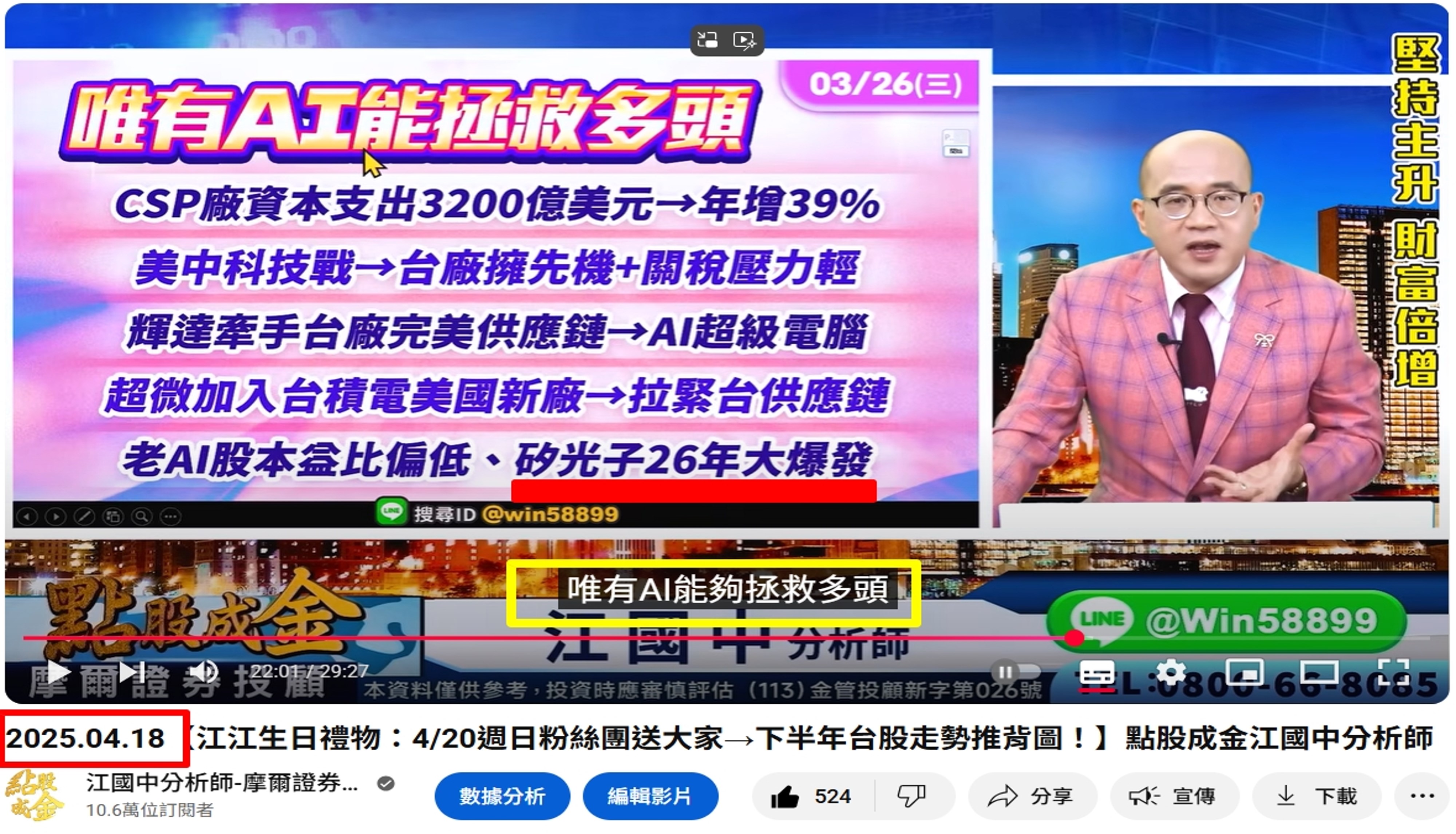 江江的Youtube【點股成金】解盤: