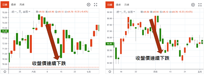 代表五天內收盤價都下跌時,可以理解為股價向下的動量非常強勁。