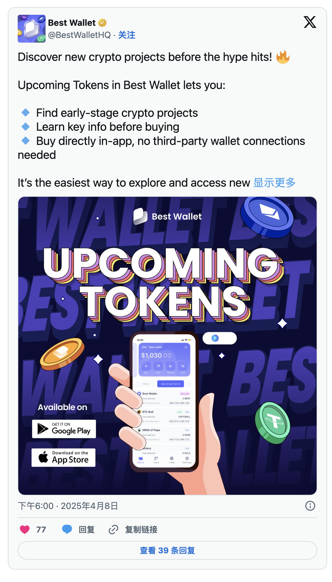 但它最強大的功能之一是「發現」(Discovery)。在一個資訊爆炸的市場中,Best Wallet 的「即將上線代幣篩選器」可幫助用戶提前發現高潛力項目。它已經成功標記了諸如 Pepe Unchained($PEPU)和 Catslap($SLAP)這樣的機會,分別帶來了 700% 和 7,000% 的回報。