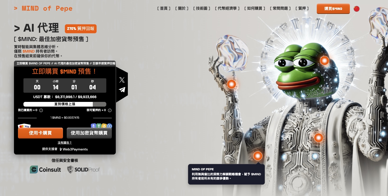 您可以透過上述社群平台關注MIND of Pepe,或是造訪MIND of Pepe ($MIND) 官網參與預售。