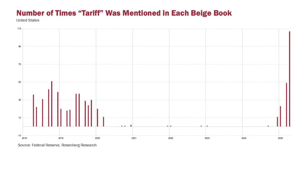 圖(二):「關稅」出現在《褐皮書》次數頻率(Source: Federal Reserve, Rosenberg Research)
