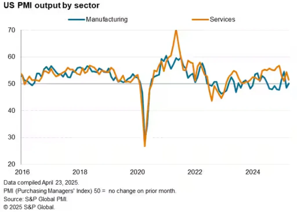 圖(四):製造業&服務業 PMI 指數變化(Source: S&P Global)