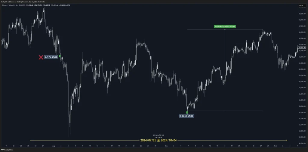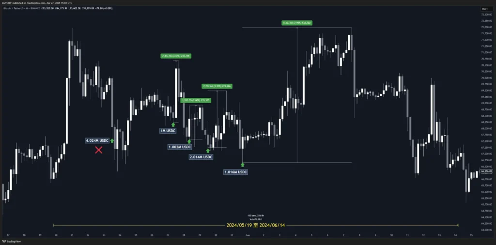 結來看,透過鏈上資料追蹤大額 USDC 轉入交易所的行為,確實能捕捉到「買盤來臨」的早期訊號:在王純(Wang Chun)多次將穩定幣注入幣安後,標的代幣短期內常有 6 %~25 %不等的暴漲。但也有少數入金未能觸發價格上行,顯示此信號仍受整體市場情緒、資金面供需及消息面事件等多重因素影響。