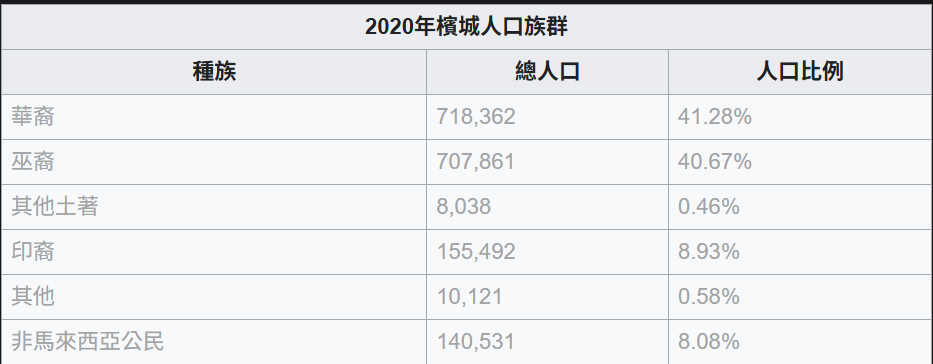根據2020年馬來西亞人口及房屋普查報告,檳城州人口密度為每平方公里1,659人,全國排名第三位。