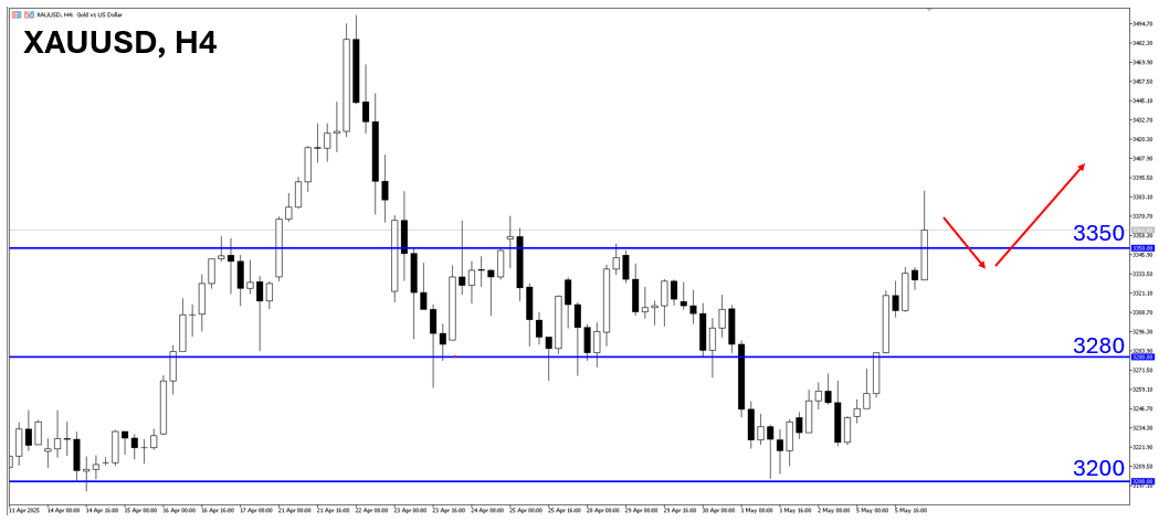 技術面:黃金在昨天突破3300整數大關後,今早再突破3350,地緣風險和關稅不確定提供短線支撐,回踩支撐並出現止跌型態,有偏多機會。