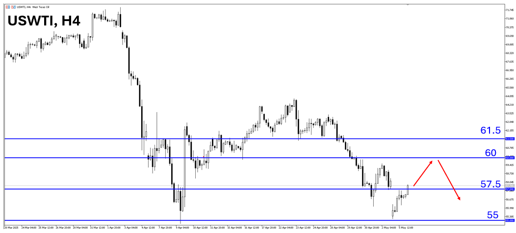 技術面:油價因OPEC+增產消息,週一跳空跌破57.5美元,今天雖出現反彈,但在供大於求、且關稅帶來的不確定持續讓需求不振,預期油價將難以扭轉偏空型態,短線反彈至重要阻力,並出現止漲型態時,將有偏空機會。