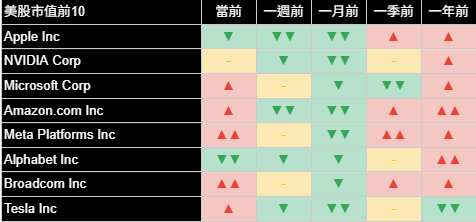 從底層分析面來看,多檔科技龍頭股的近期市場特性持續改善。分析目前顯示,微軟 (Microsoft Corp)、亞馬遜 (Amazon.com Inc)、Meta Platforms Inc、博通 (Broadcom Inc) 和特斯拉 (Tesla Inc) 的狀況有利。輝達 (NVIDIA Corp) 亦從先前的不利評估轉為中性。蘋果 (Apple Inc) 和Alphabet Inc A股 (Alphabet Inc Class A) 則維持中度不利狀態。摩根大通 (JPMorgan Chase & Co) 維持其有利評估,而波克夏海瑟威B股 (Berkshire Hathaway Inc Class B) 則維持中性。今日的價格走勢開始與這些關鍵個股中多檔改善後的分析讀數更為一致。