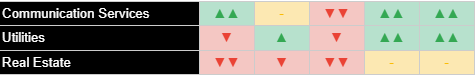 從分析角度來看,今日的價格走勢進一步改善了多個關鍵成長型類股的近期特性。分析目前指出,資訊科技、金融、非必需消費品和工業類股的狀況有利。通訊服務和能源類股改善至中性狀態。然而,醫療保健類股轉為極為不利狀況,而必需消費品和房地產類股的評估亦分別惡化至極為不利和中度不利。公用事業類股則維持中度不利。此日益加劇的分歧突顯市場變得更具選擇性。
