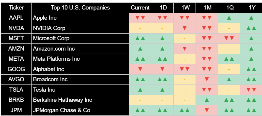 Performance among the largest U.S. companies was mixed on Thursday, with some notable decliners among the "Magnificent Seven" after recent strong runs, reflecting the broader market's cautious and rotational mood.