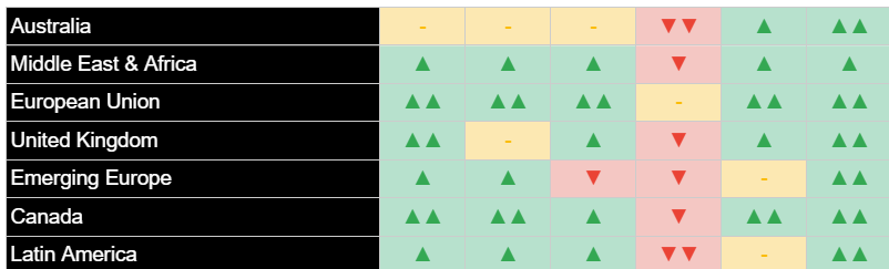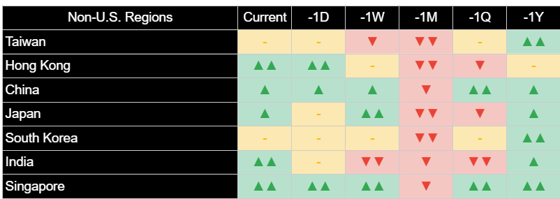 已開發市場大多為正向:歐洲股市上漲+0.99%,日本股市上漲+1.19%。分析持續顯示這些地區潛在的正向特性正在增強,可能受惠於市場認為聯準會正試圖避免美國經濟衰退的看法。