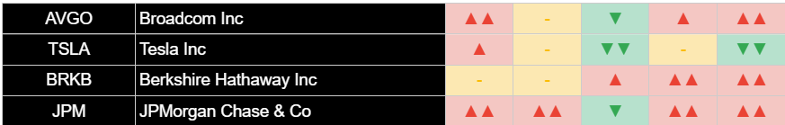Looking at individual stock performance for the day: Amazon.com Inc fell -2.42%, reportedly following news of job cuts in its devices division. Meta Platforms Inc also declined, losing -2.35%, with reports citing a potential delay in a flagship AI model. Apple Inc slipped -0.41%, and NVIDIA Corp was down -0.38%. Tesla Inc also fell, by -1.40%. In contrast, Microsoft Corp (+0.04%) and Alphabet Inc Class A (-0.85%) saw more modest moves. Broadcom Inc (+0.22%) managed a gain. Financials were mixed, with JPMorgan Chase & Co up +0.70%, while Berkshire Hathaway Inc Class B gained +0.78%.