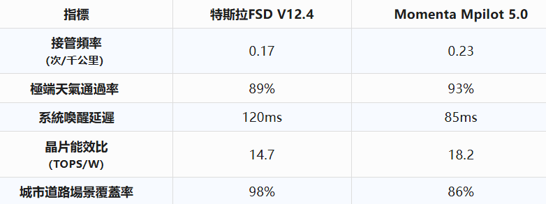 特斯拉在通用場景覆蓋上保持領先,但Momenta通過專用場景最佳化(如雨霧天氣)實現局部超越
