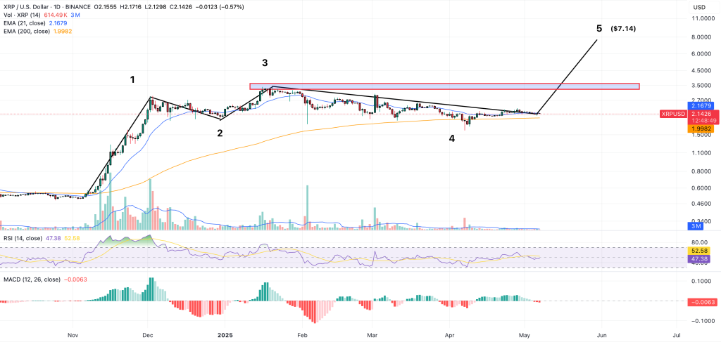 根據艾略特波浪理論對近期價格走勢的分析顯示,XRP目前具備有利的結構,未來幾週內有望衝擊7美元價位。